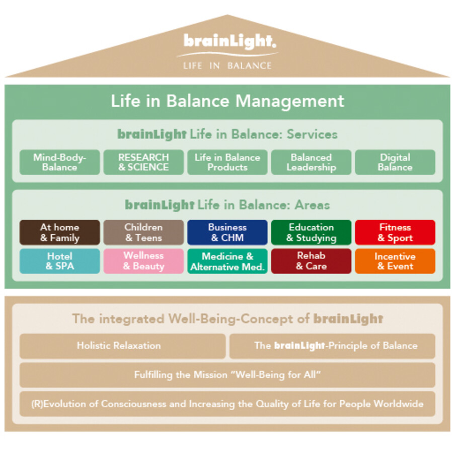 At all times and at all ages, we humans strive for something that fulfills us, moves us, inspires us, makes us feel good and makes us happy. We long for a state that makes us say: “That's it. It's right now.” What is this state? At brainLight, we describe it as a state of balance and harmony: Life in Balance. This formula encompasses human quality of life, experience meaning of one’s life, fulfillment and development of potential. It is our entrepreneurial mission: Well-Being for All.